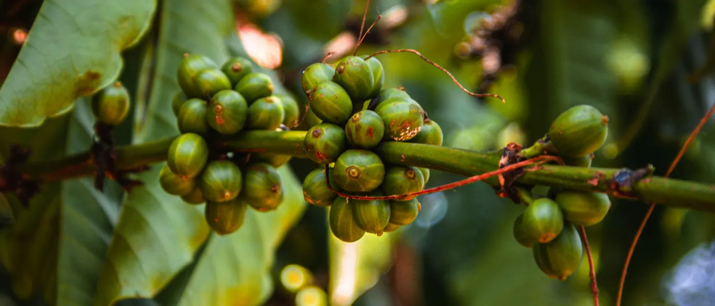 エチオピアの高原、朝露に濡れた色とりどりのチェリーの実が、やわらかな風に揺れている。