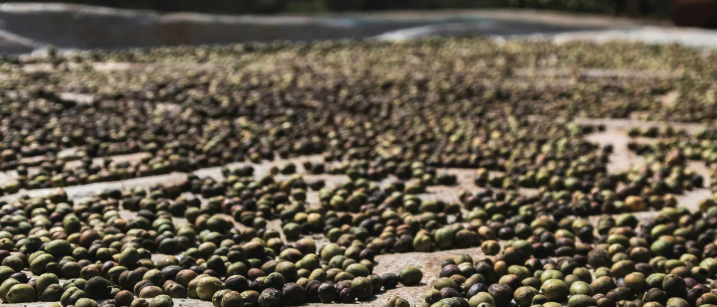 摘み取られた豆たちは、自然の力でゆっくりと乾いていく。
